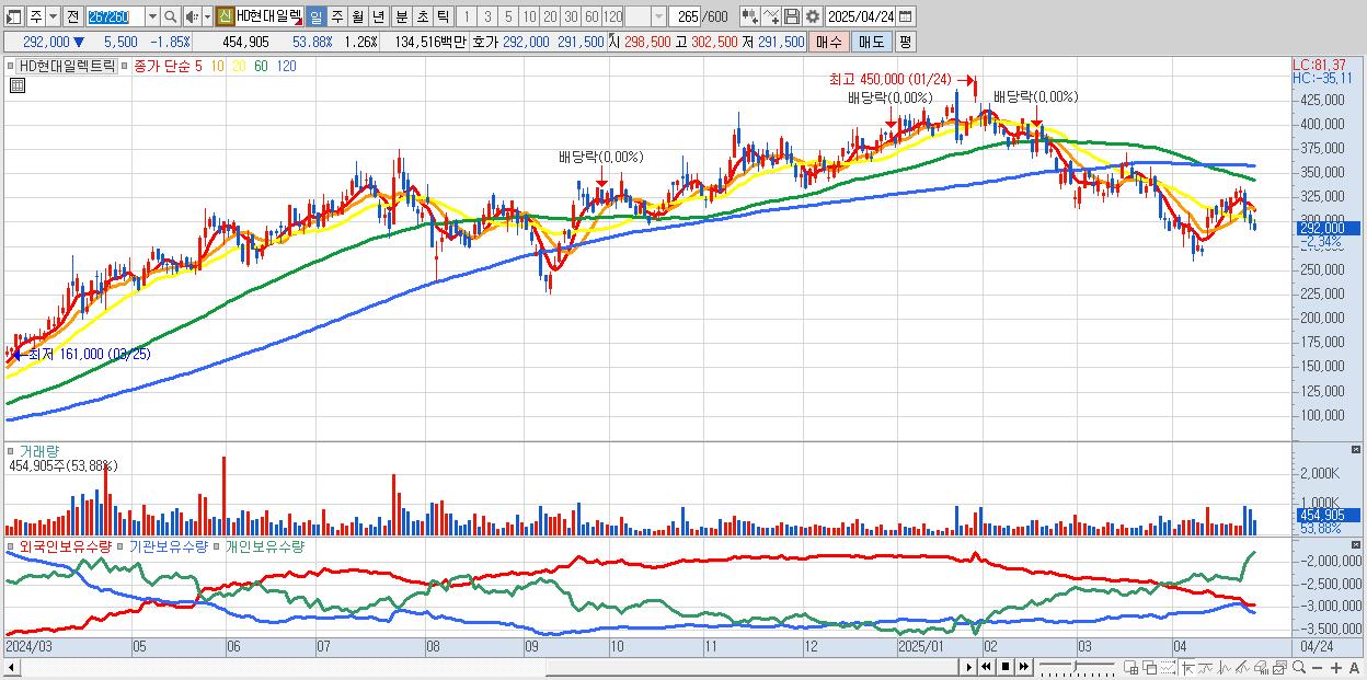 - HD현대일렉트릭 (293,000원 ▼ -1.51% , 시총: 105,618억, 거래량: 324,948, 거래대금:960억)