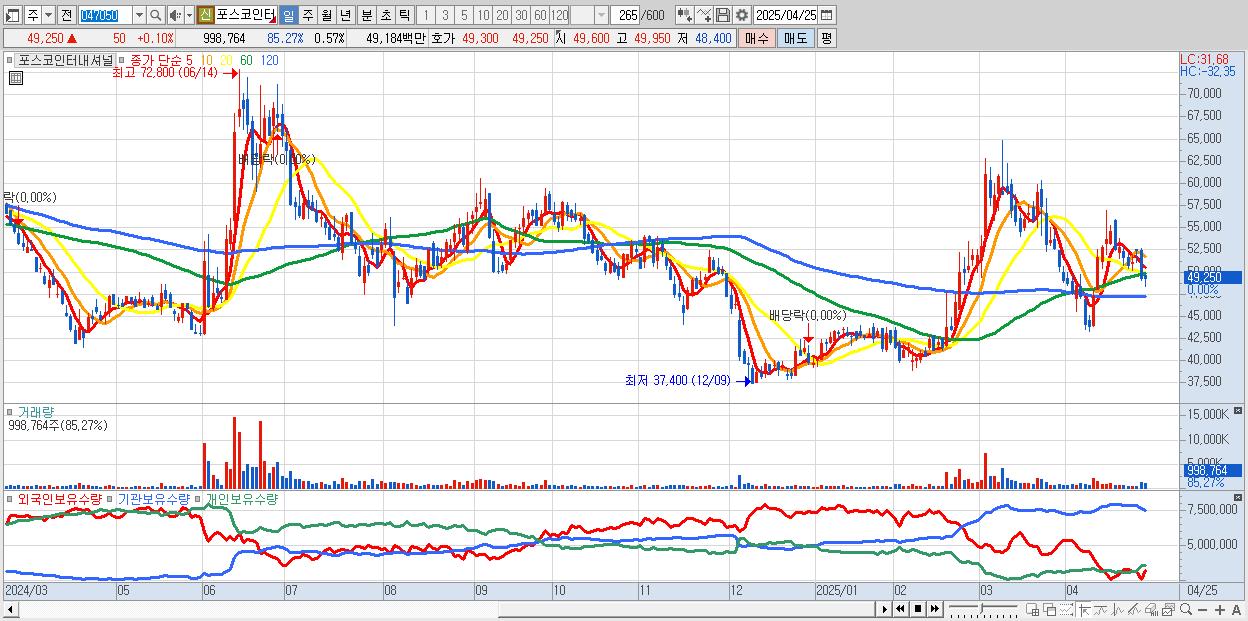 - 포스코인터내셔널 (49,350원 ▲ 0.3% , 시총: 86,818억, 외국인 순매수 거래금:81억)
