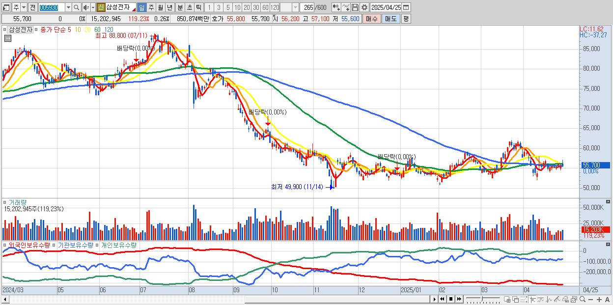 1.삼성전자 55,700원 0% (KOSPI, 005930)