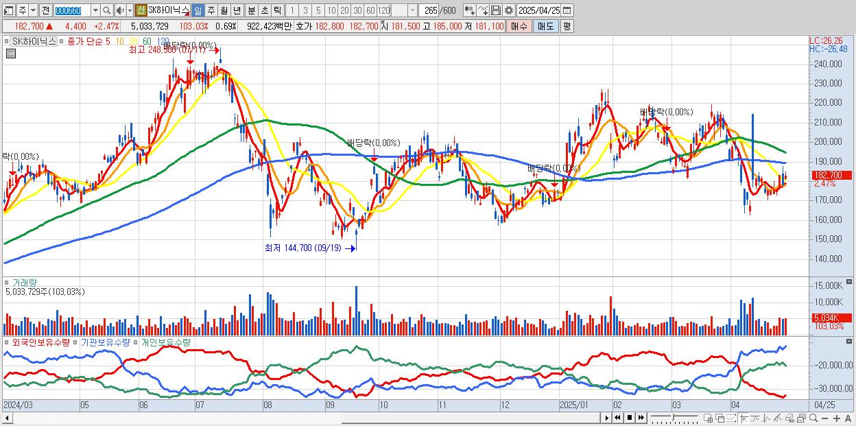 2.SK하이닉스 184,400원 ▲ 3.42% (KOSPI, 000660)