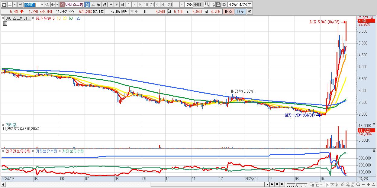 아이스크림에듀 5,940원 ▲ 29.98% (KOSDAQ, 289010)