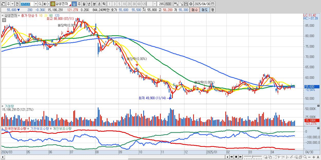 1.삼성전자 55,500원 ▼ -0.54% (KOSPI, 005930)