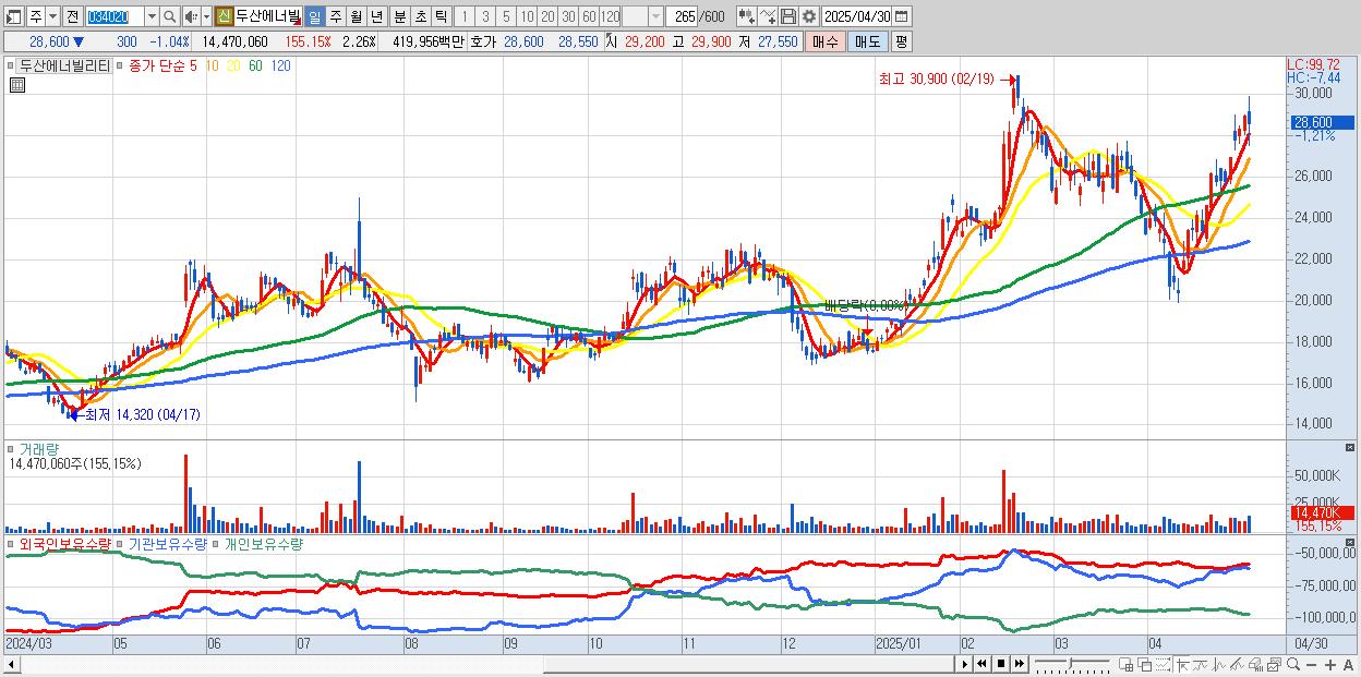 - 두산에너빌리티 (28,950원 ▲ 0.17% , 시총: 185,442억, 거래량: 7,230,121, 거래대금:2,104억)
