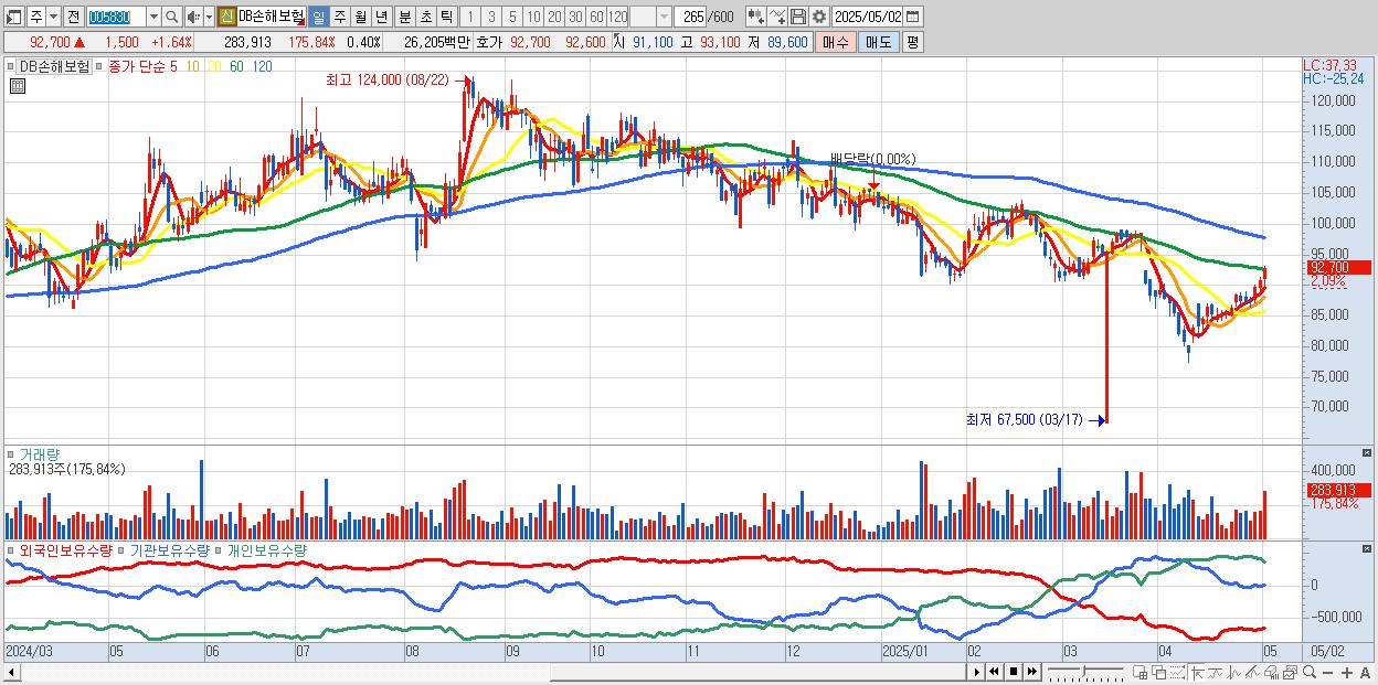 30.DB손해보험 92,900원 ▲ 1.86% (KOSPI, 005830)