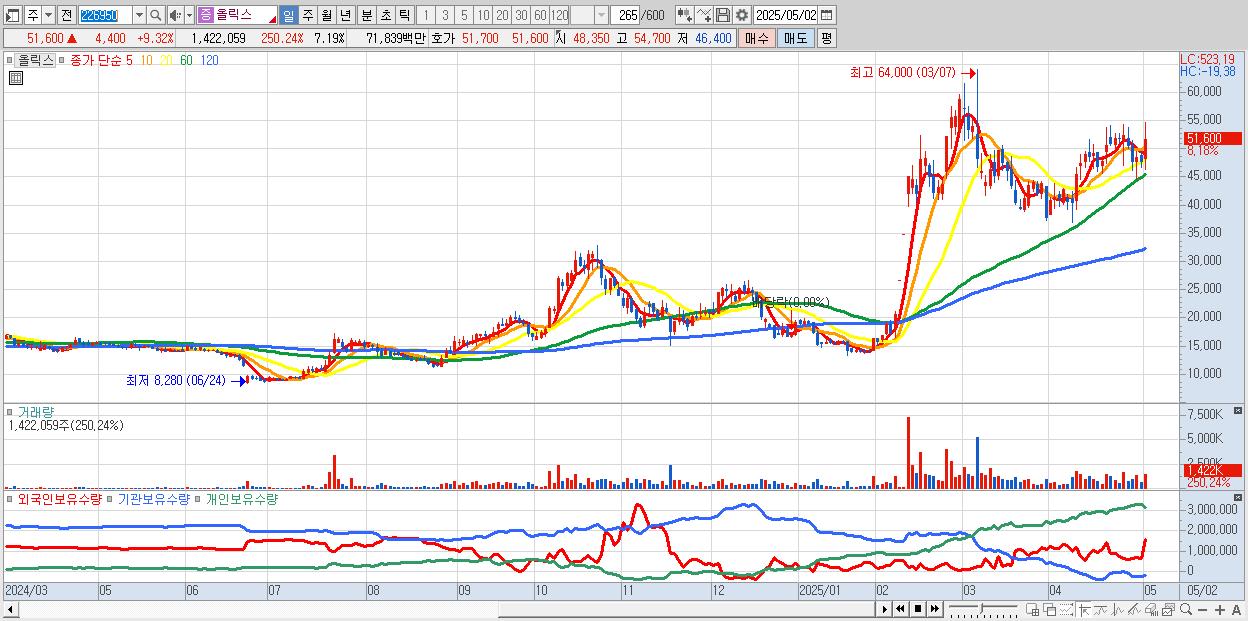- 올릭스 (52,000원 ▲ 10.17% , 시총: 10,283억, 외국인 순매수 거래금:102억)