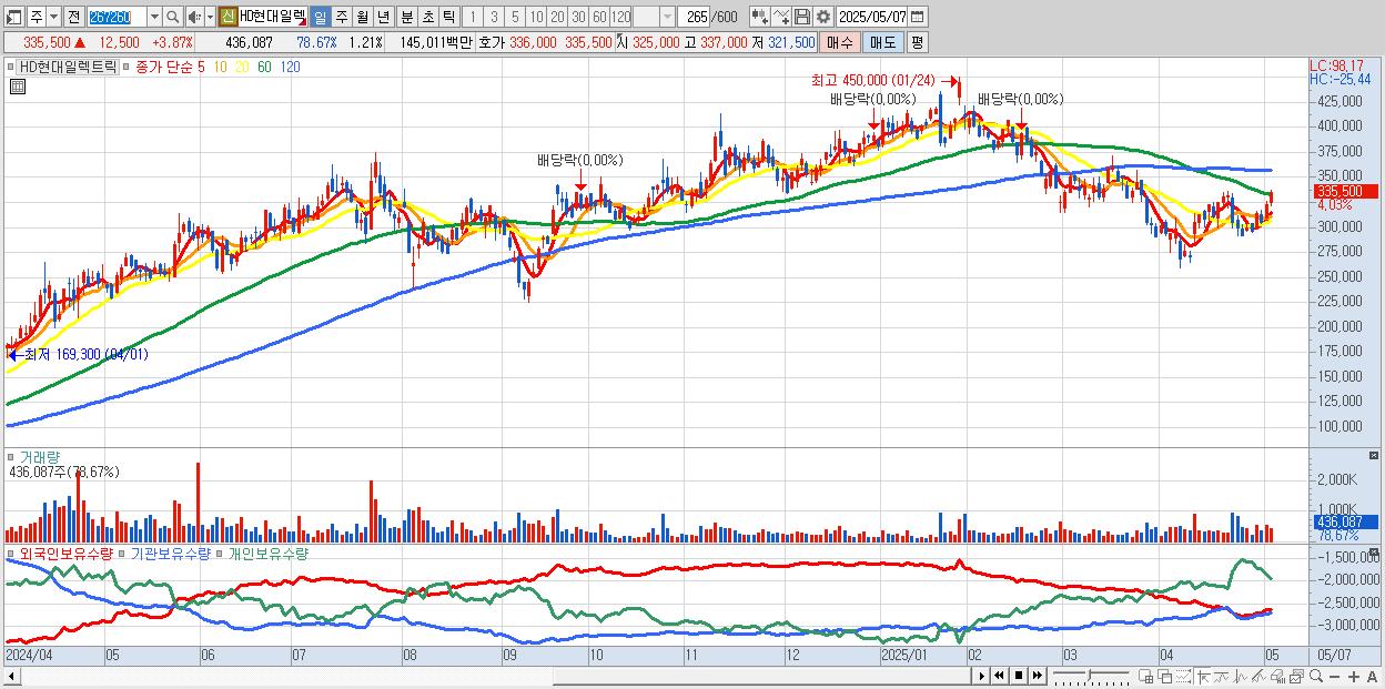- HD현대일렉트릭 (335,500원 ▲ 3.87% , 시총: 120,938억, 거래량: 345,682, 거래대금:1,151억)