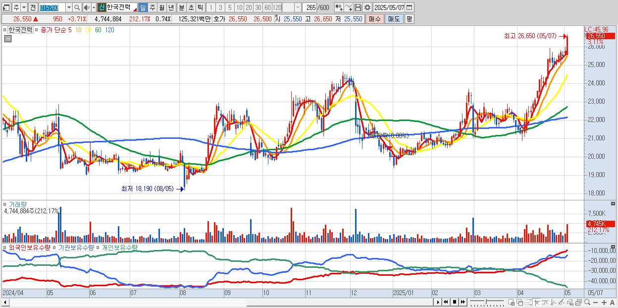 30.한국전력 26,600원 ▲ 3.91% (KOSPI, 015760)