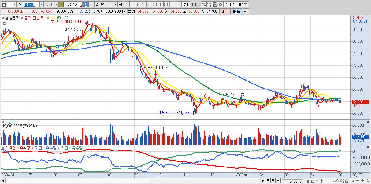 1.삼성전자 54,600원 ▲ 0.55% (KOSPI, 005930)