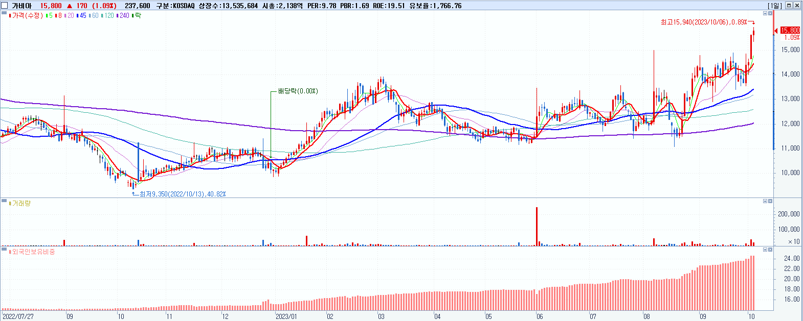 가비아 15,800원 ▲ 1.09% (KOSDAQ, 079940)