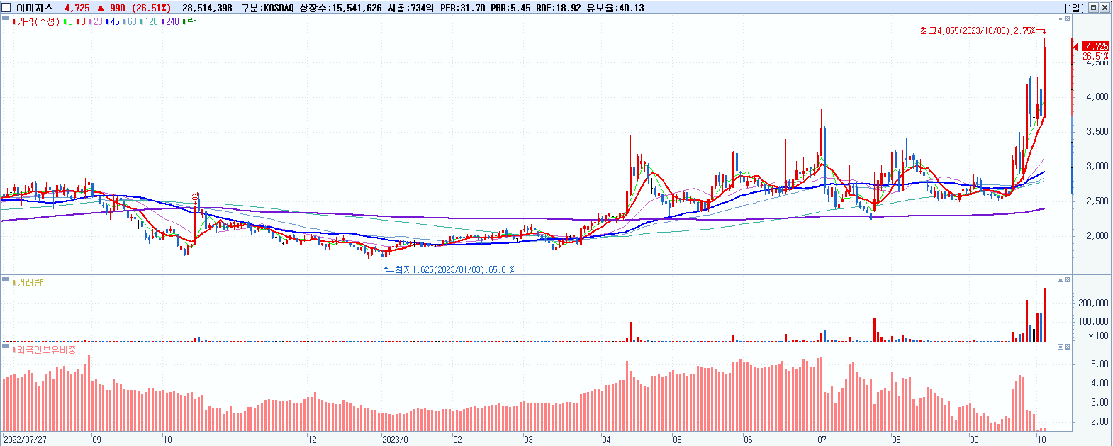 이미지스 4,725원 ▲ 26.51% (KOSDAQ, 115610)