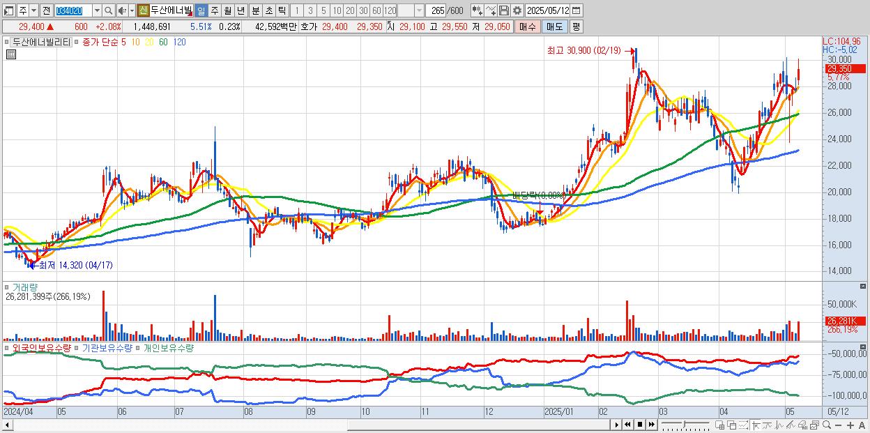 - 두산에너빌리티 (28,800원 ▲ 3.41% , 시총: 184,482억, 거래량: 13,828,502, 거래대금:4,073억)