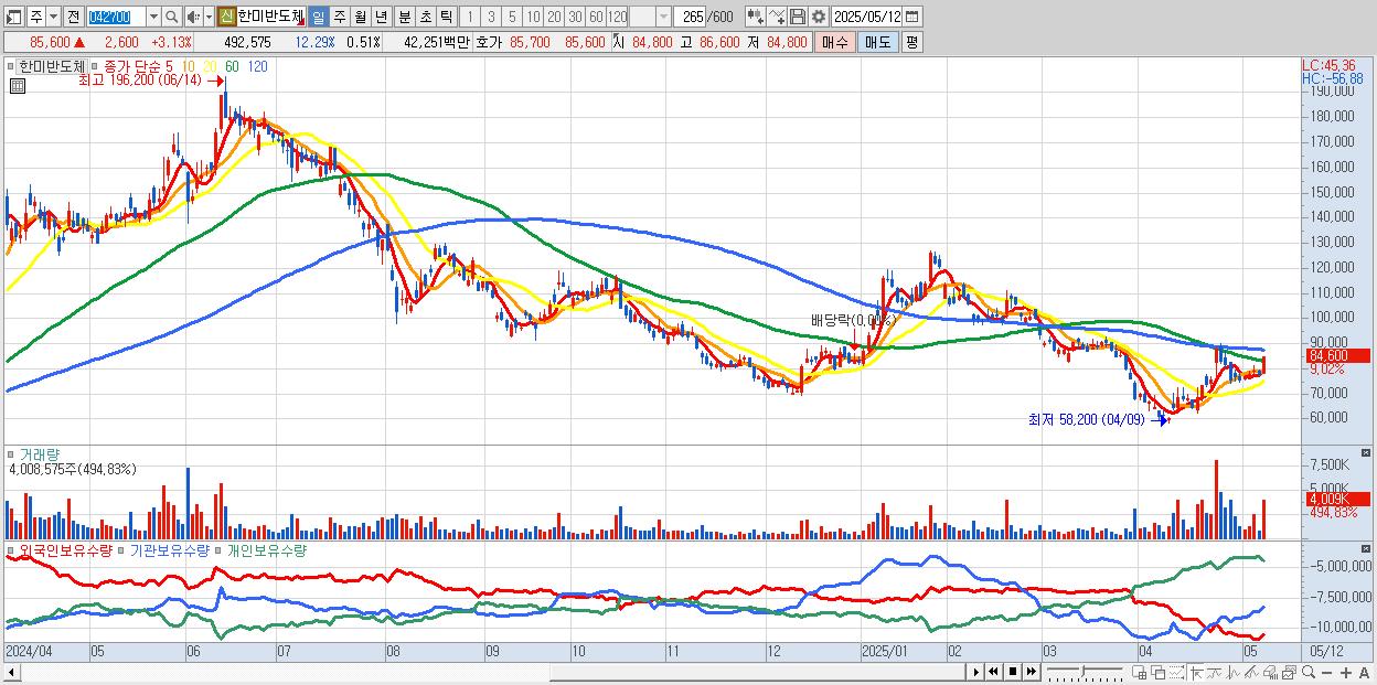 - 한미반도체 (83,000원 ▲ 7.24% , 시총: 80,190억, 거래량: 1,993,316, 거래대금:1,640억)