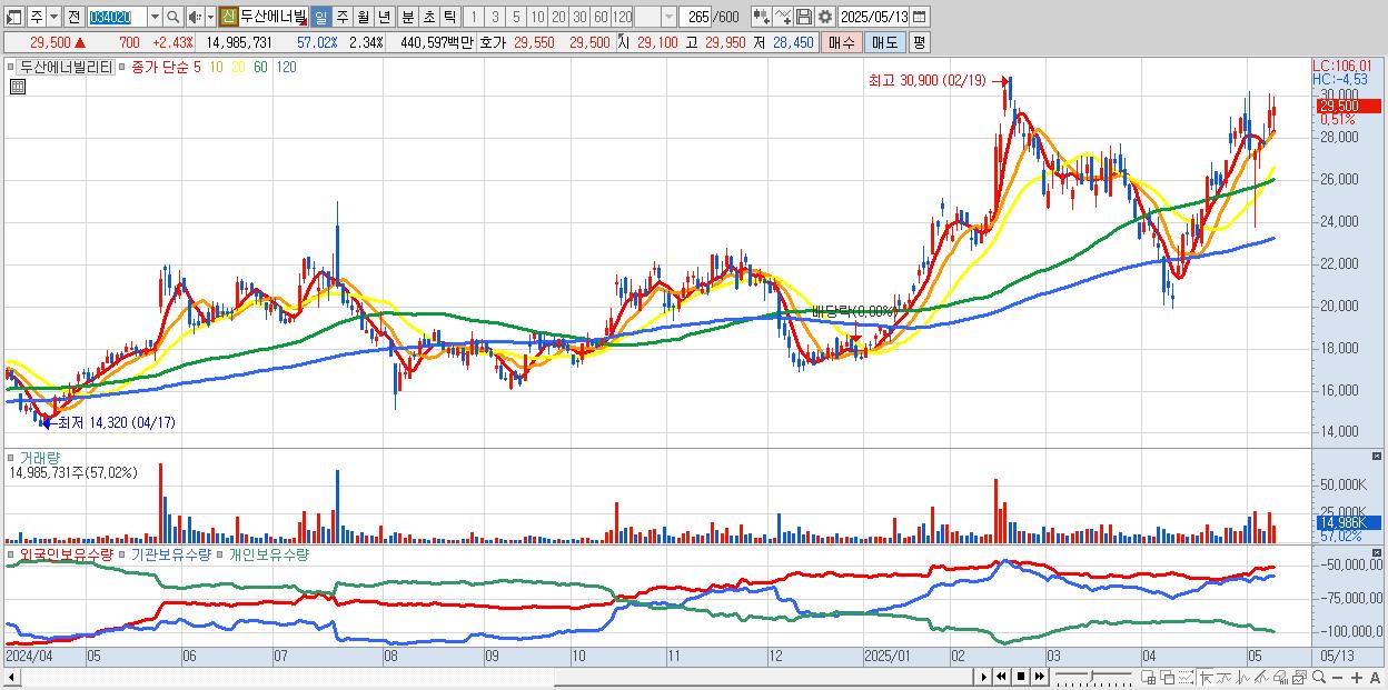 - 두산에너빌리티 (29,650원 ▲ 2.95% , 시총: 189,926억, 외국인 순매수 거래금:207억)