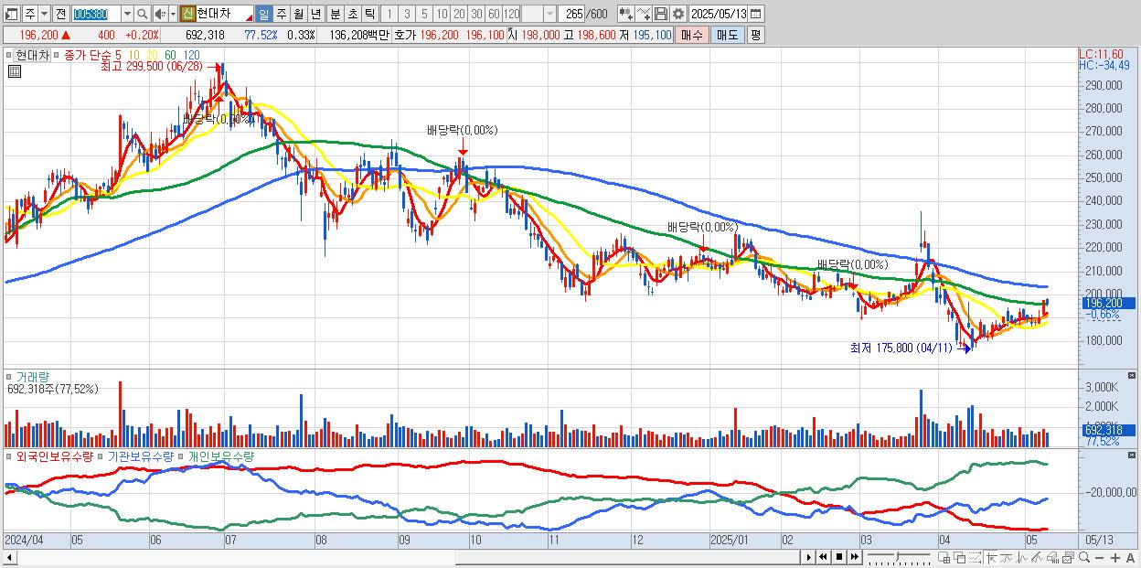 - 현대차 (196,700원 ▲ 0.46% , 시총: 411,922억, 외국인 순매수 거래금:64억)
