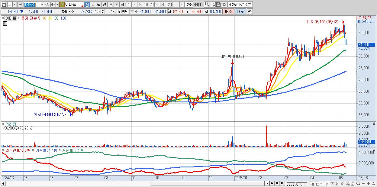 30.이마트 84,800원 ▼ -2.08% (KOSPI, 139480)