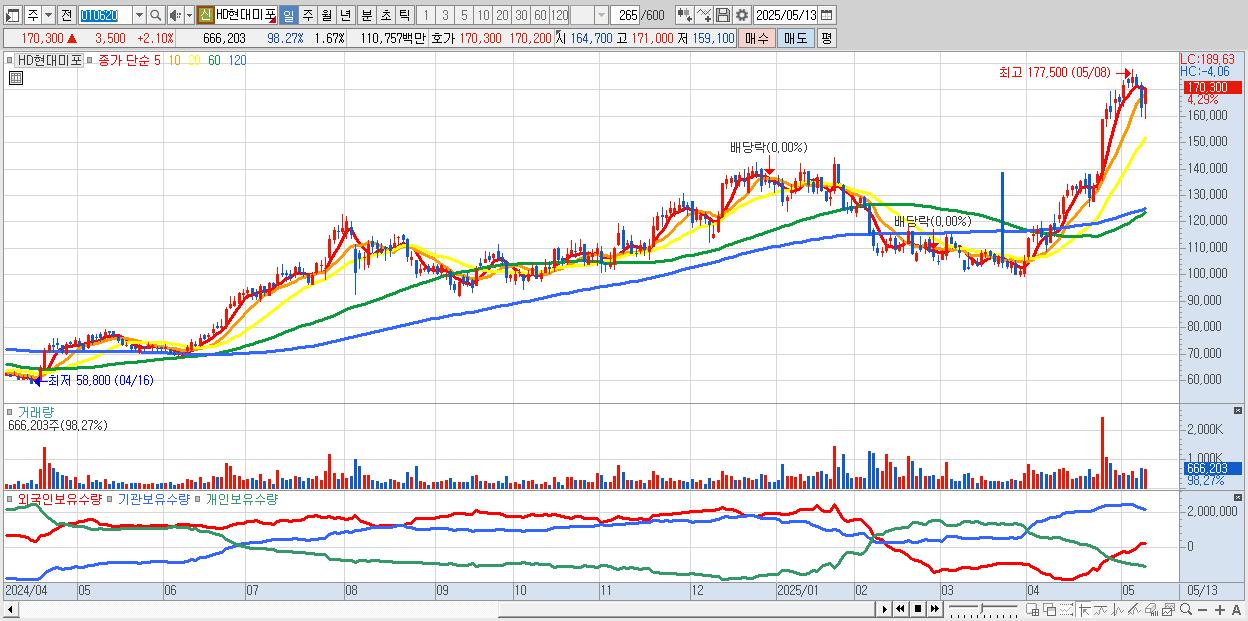 2.HD현대미포 170,600원 ▲ 2.28% (KOSPI, 010620)