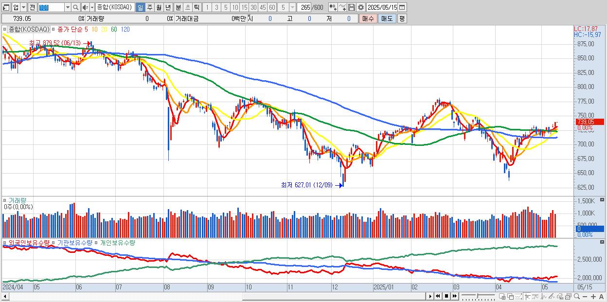| 05/14 | 739.05 | ▲0.98% | -857억 | 474억 | 621억 | -237억 |