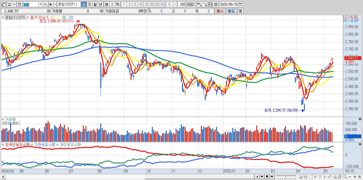 | 05/14 | 2,640.57 | ▲1.23% | -10,024억 | 4,704억 | 5,348억 | -27억 |