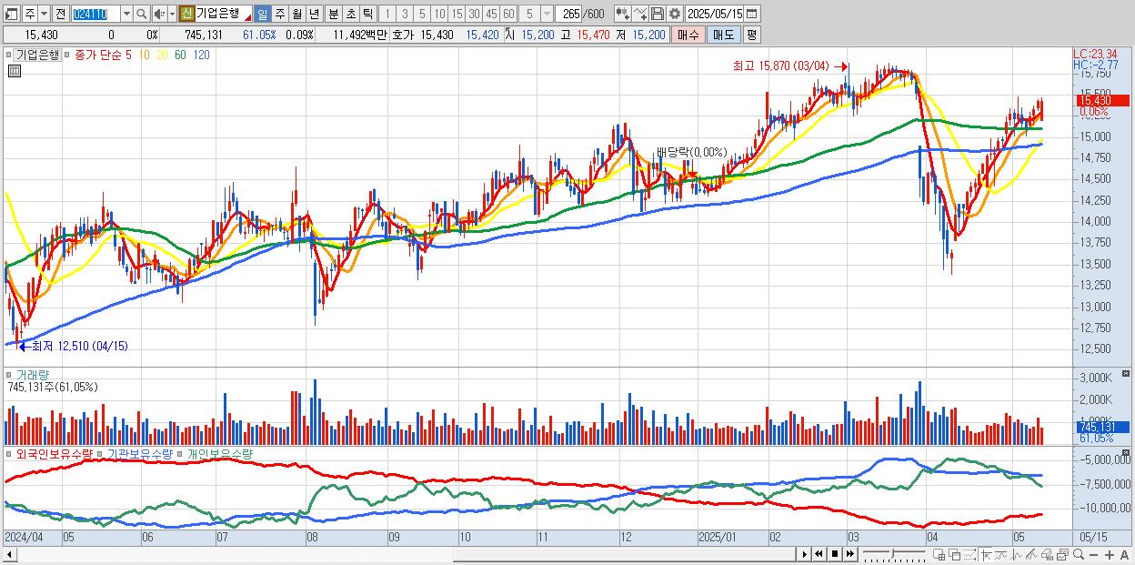 30.기업은행 15,470원 ▲ 0.26% (KOSPI, 024110)