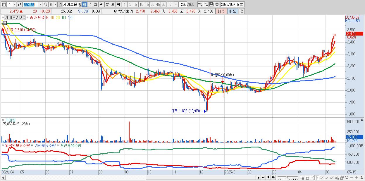 세이브존I&C 2,470원 ▲ 0.82% (KOSPI, 067830)