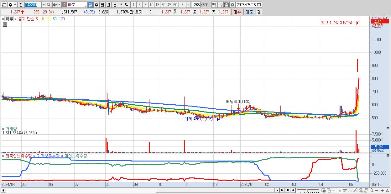 파루 1,237원 ▲ 29.94% (KOSDAQ, 043200)