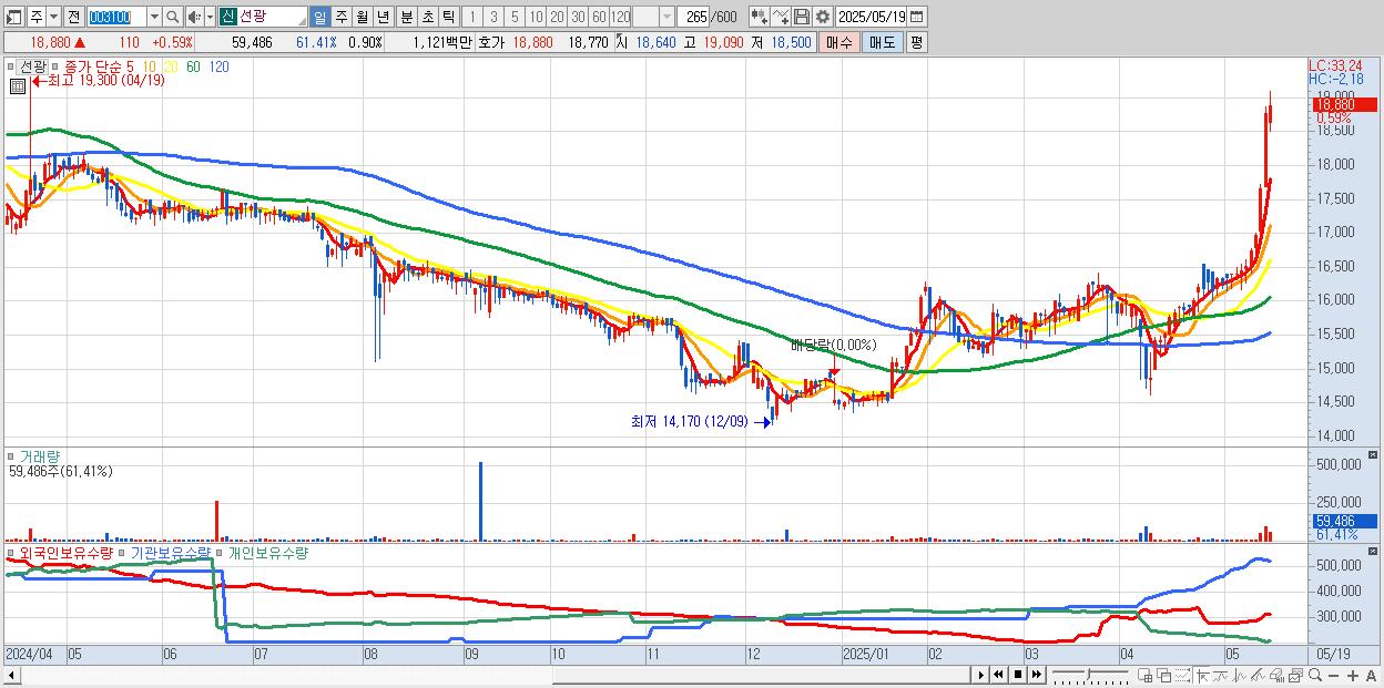 선광 18,880원 ▲ 0.59% (KOSDAQ, 003100)