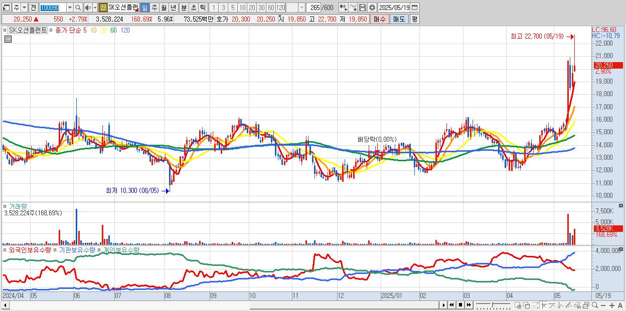 - SK오션플랜트 (20,450원 ▲ 3.81% , 시총: 12,105억, 거래량: 1,908,043, 거래대금:396억, KOSPI)