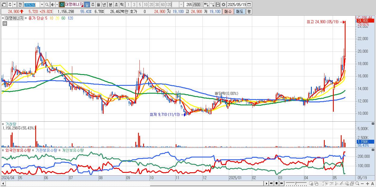 대명에너지 24,900원 ▲ 29.82% (KOSDAQ, 389260)
