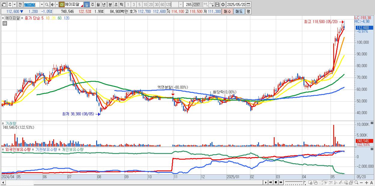 - 에이피알 (113,100원 ▼ -0.62% , 시총: 42,505억, 외국인 순매수 거래금:58억)