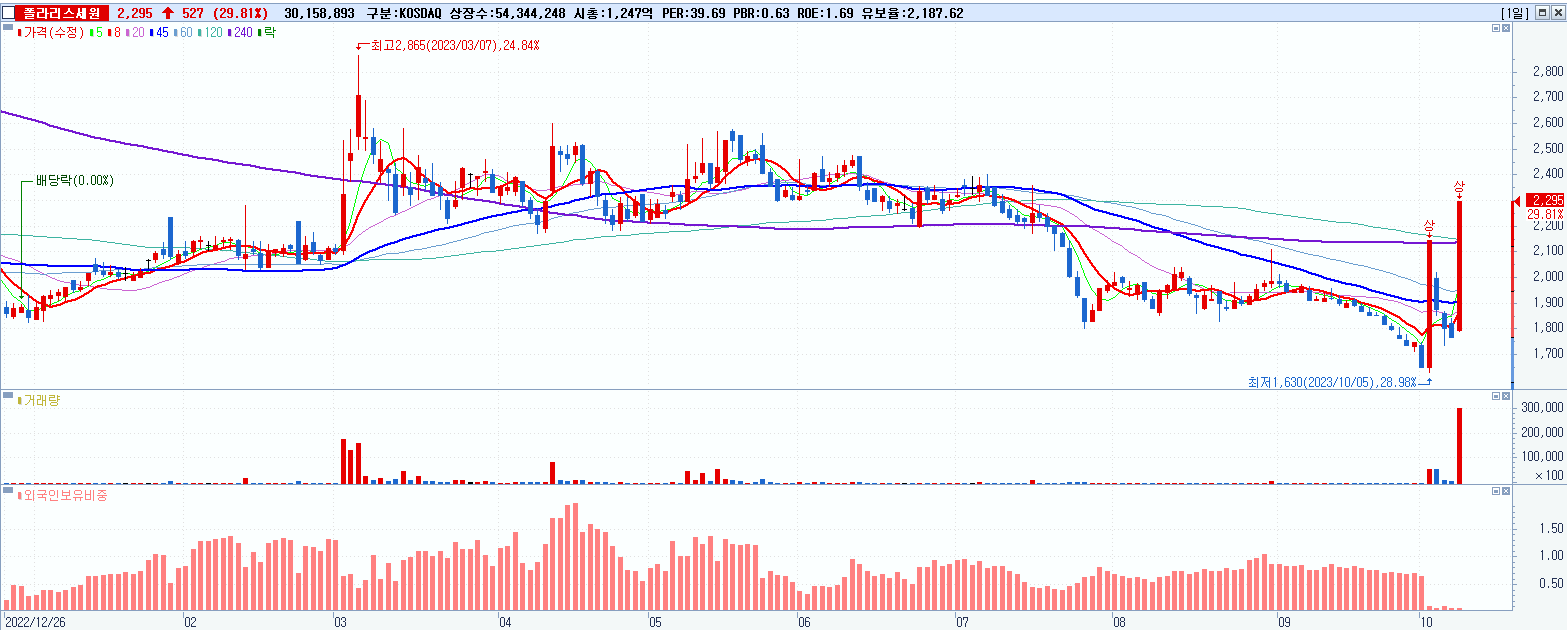 2.폴라리스세원 2,295원 ▲ 29.81% (KOSDAQ, 234100)