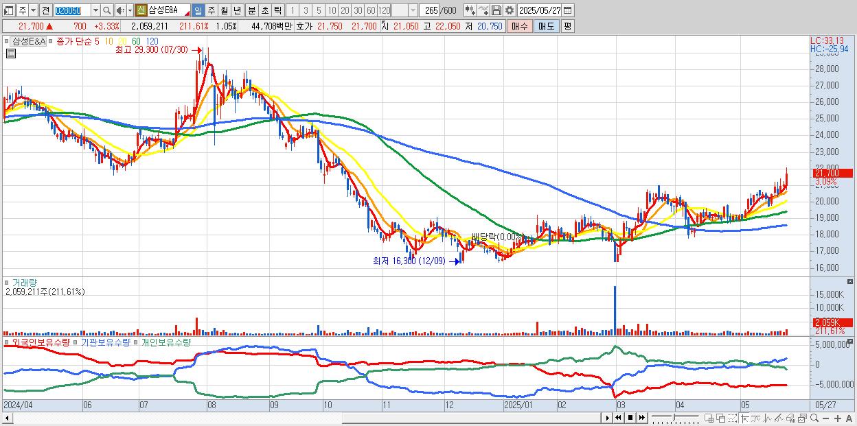 - 삼성E&A (21,750원 ▲ 3.57% , 시총: 42,630억, 외국인 순매수 거래금:46억)