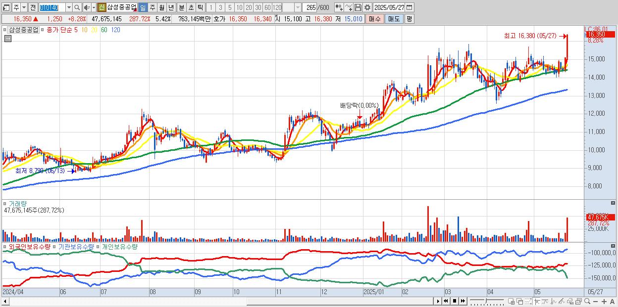 2.삼성중공업 16,350원 ▲ 8.28% (KOSPI, 010140)