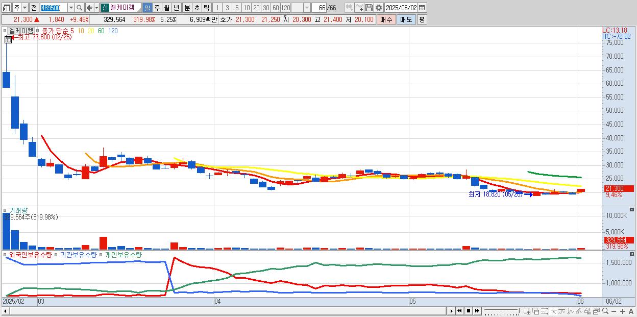 - 엘케이켐 (21,300원 ▲ 9.46% , 시총: 1,337억, 거래량: 329,564, 거래대금:69억)