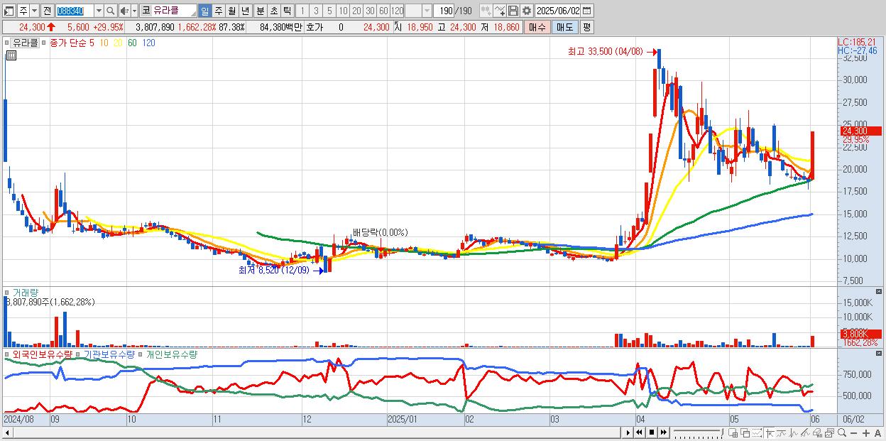 2.유라클 24,300원 ▲ 29.95% (KOSDAQ, 088340)