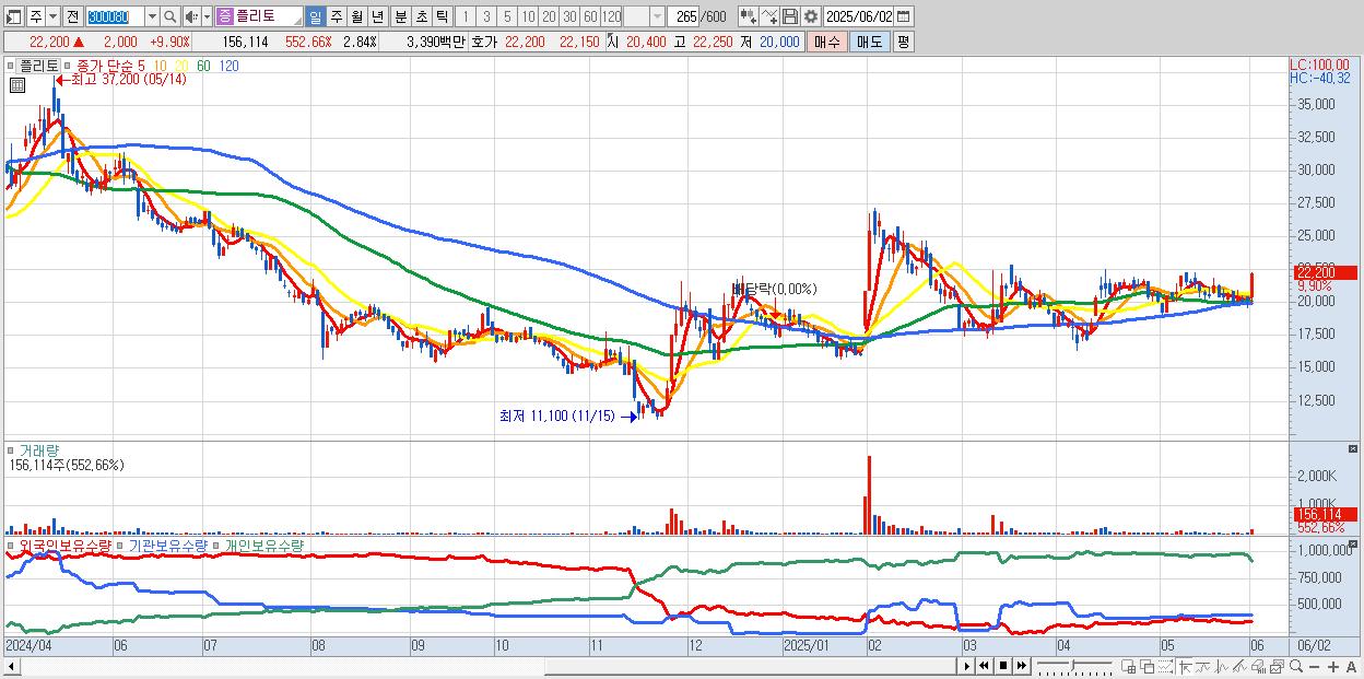 - 플리토 (22,200원 ▲ 9.9% , 시총: 1,221억, 거래량: 156,114, 거래대금:34억)