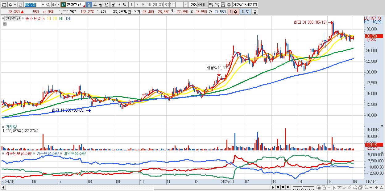 - 한화엔진 (28,350원 ▲ 1.98% , 시총: 23,657억, 외국인 순매수 거래금:70억)