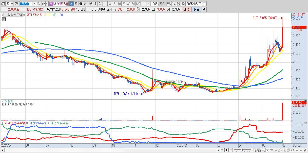 내츄럴엔도텍 2,800원 ▲ 19.91% (KOSDAQ, 168330)