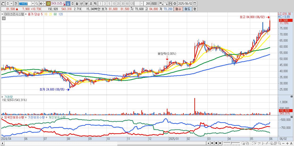 - 아이쓰리시스템 (83,000원 ▲ 12.77% , 시총: 5,899억, 거래량: 148,709, 거래대금:118억, KOSDAQ)