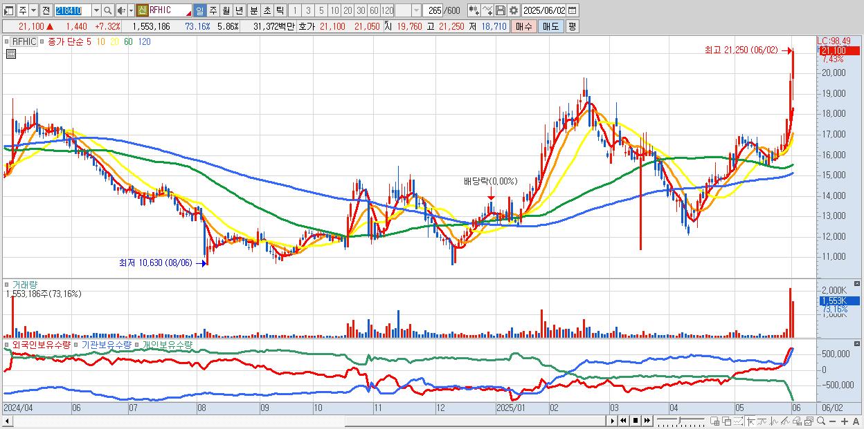 - RFHIC (20,900원 ▲ 6.31% , 시총: 5,535억, 거래량: 970,898, 거래대금:197억, KOSDAQ)