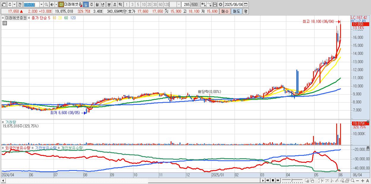 - 미래에셋증권 (17,690원 ▲ 13.25% , 시총: 100,889억, 거래량: 12,638,701, 거래대금:2,189억, KOSPI)