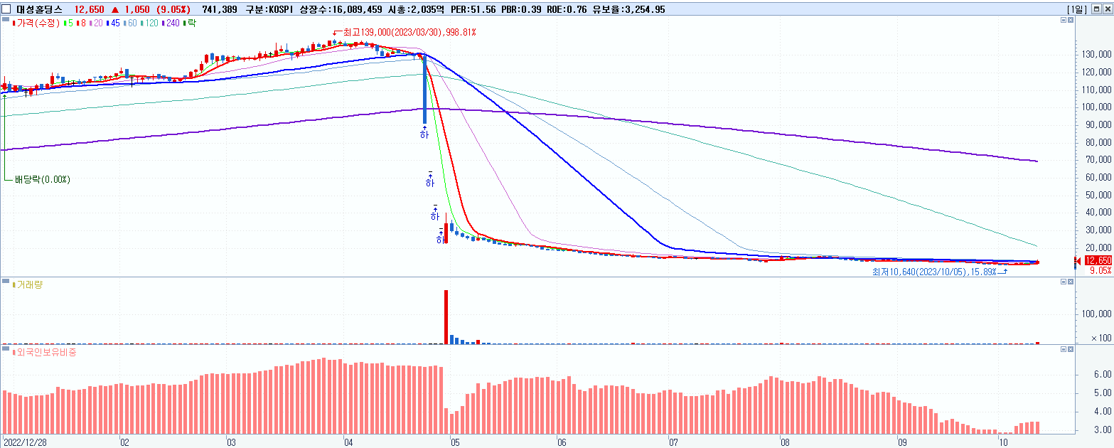 - 대성홀딩스 (12,650원 ▲ 9.05% , 시총: 2,035억, 거래량: 741,800, 거래대금:95억)