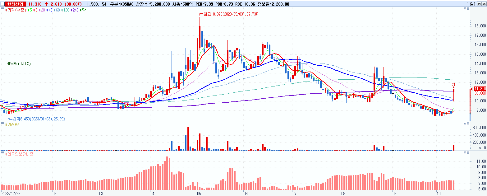 2.한창산업 11,310원 ▲ 30% (KOSDAQ, 079170)