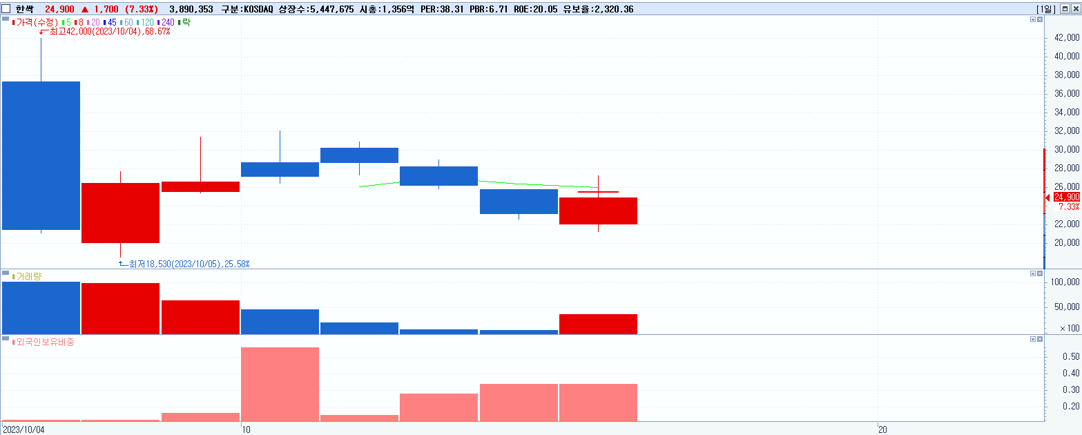 29.한싹 24,900원 ▲ 7.33% (KOSDAQ, 430690)