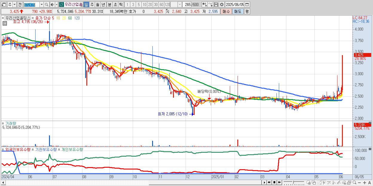 2.우리산업홀딩스 3,425원 ▲ 29.98% (KOSDAQ, 072470)