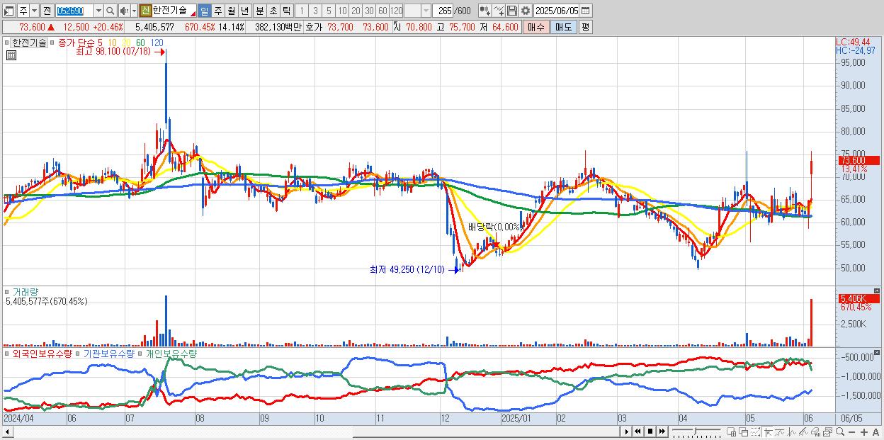 - 한전기술 (73,200원 ▲ 19.8% , 시총: 27,977억, 거래량: 2,891,391, 거래대금:2,049억)