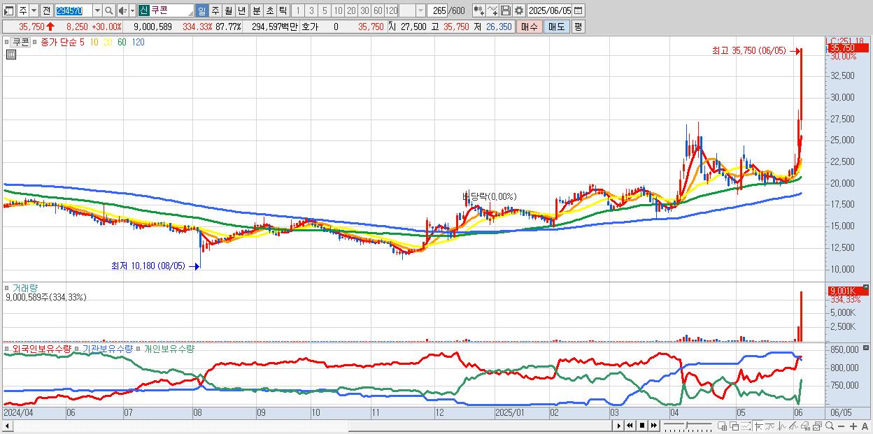 쿠콘 35,750원 ▲ 30% (KOSDAQ, 294570)