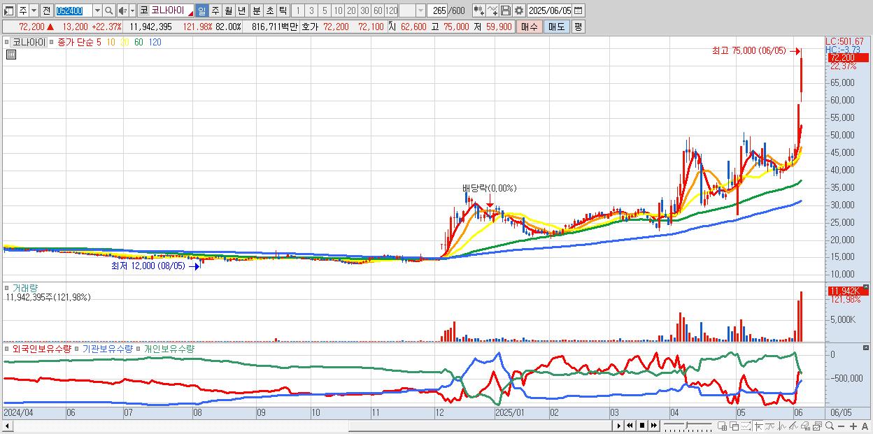 - 코나아이 (71,600원 ▲ 21.36% , 시총: 10,427억, 거래량: 5,698,466, 거래대금:3,929억, KOSDAQ)
