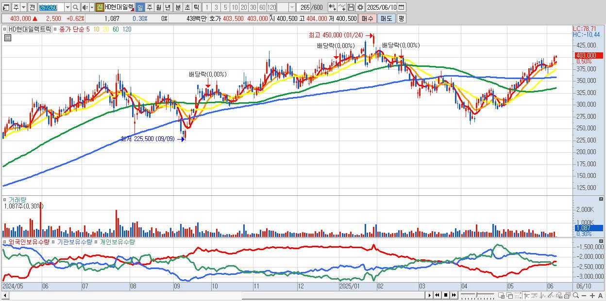 - HD현대일렉트릭 (400,500원 ▲ 2.96% , 시총: 144,369억, 외국인 순매수 거래금:488억)