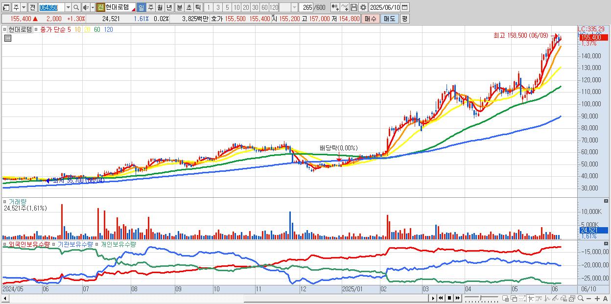 - 현대로템 (153,400원 ▼ -1.35% , 시총: 167,424억, 외국인 순매수 거래금:178억)