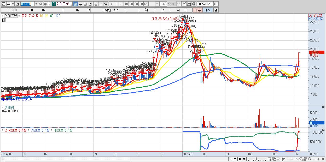 - 와이즈넛 (19,200원 ▲ 20.53% , 시총: 2,515억, 거래량: 3,098,350, 거래대금:581억, KOSDAQ)